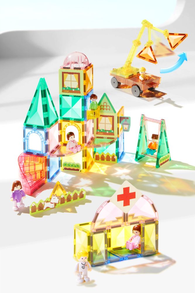 Moje první magnetická stavebnice – Rodina 👨👩👧 je ideální sada pro menší děti od 3 let. Díky barevným průhledným dílkům a roztomilým figurkám si mohou postavit nemocnici, domeček nebo hřiště a zároveň rozvíjet svou fantazii, motoriku i logické myšlení.
