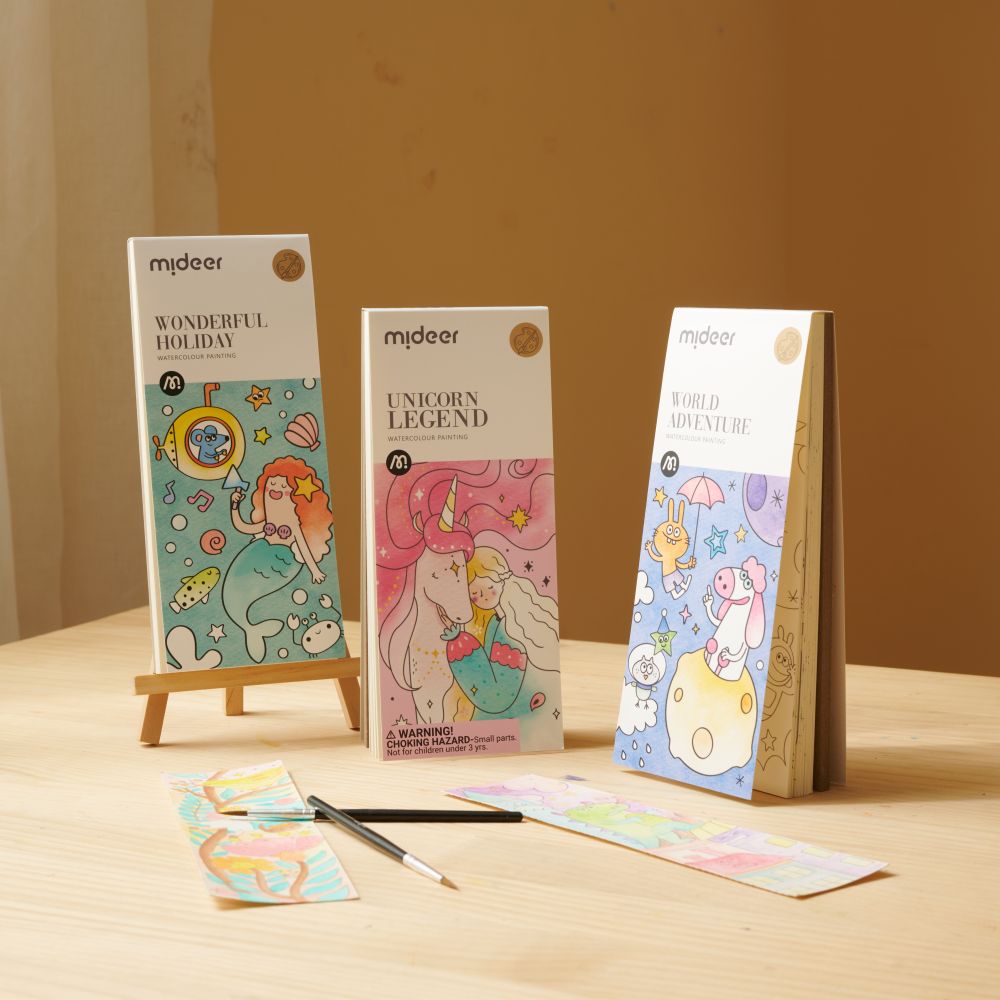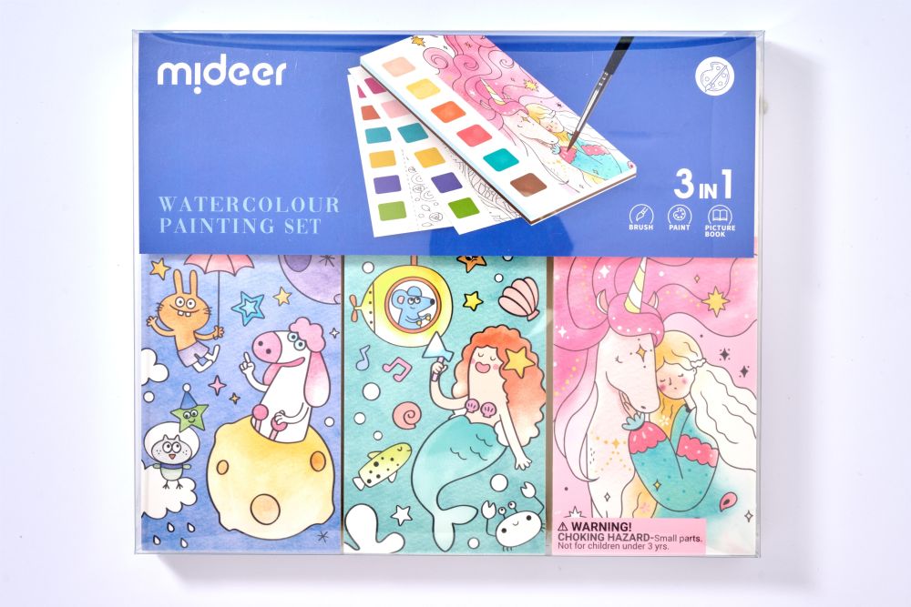 Má vaše dítě rádo tvoření a kreslení? 🌟 Pak ho jistě nadchne sada Malování vodovými barvami – 3 motivy od Mideer.