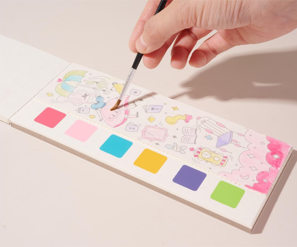 Jednoduchý princip „malování jen s vodou“ zajišťuje, že děti mohou okamžitě začít tvořit, a to bez složité přípravy či zbytečného nepořádku. Barvy jsou zabudované přímo ve stránkách knížek, takže stačí jen naplnit přiložený štětec vodou a pustit se do objevování kouzelných obrázků.